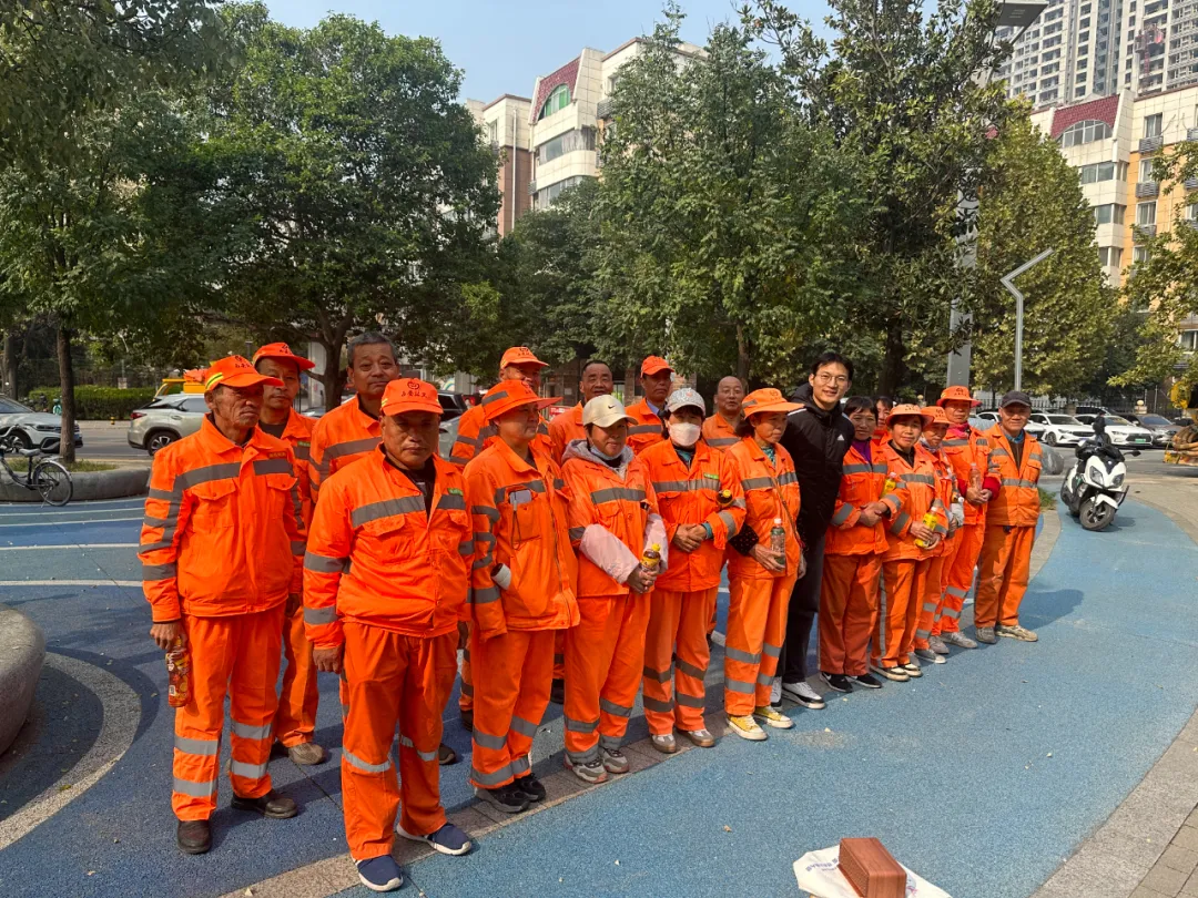 亓超凡和环卫工人合影