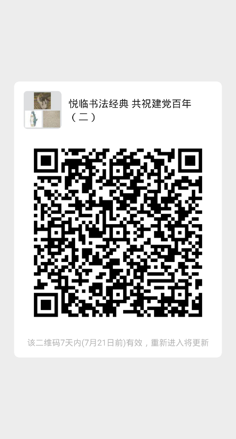 1. 拟参加学生可加入“悦临书法经典,共祝建党百年”活动打卡微信交流群,在群内参与管理员发布的打卡任务(注意:已参加寒假打卡活动并入群的同学不必再次入微信群)。
