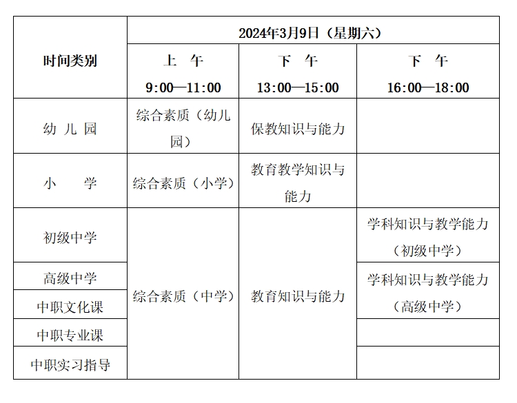 (三)根据《教育部教师工作司关于中小学教师资格考试增加“心理健康教育”等学科的通知》(教师司函〔2017〕41号)和《教育部教师工作司关于中小学教师资格考试增加“特殊教育”等学科的通知》(教师司函〔2019〕51号),中小学教师资格考试初中、高中、中职文化课类别面试增设“心理健康教育”、“日语”、“俄语”、“特殊教育”等学科,新增学科的笔试科目三《学科知识与教学能力》结合面试一并考核。