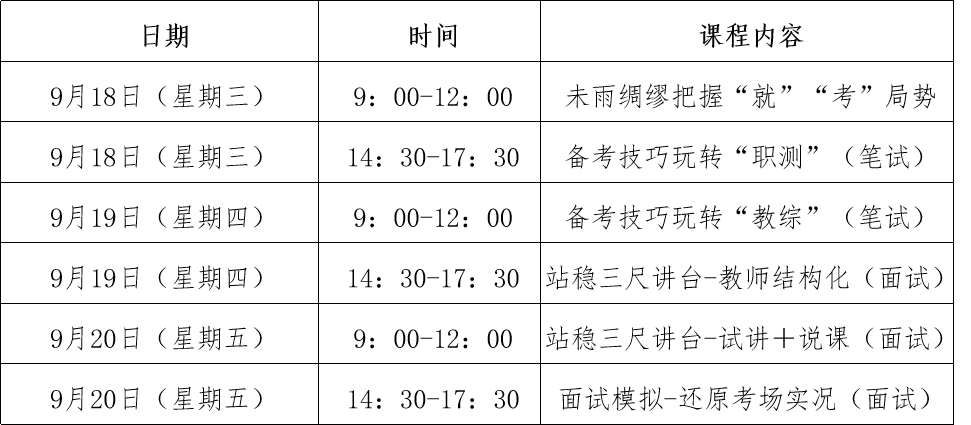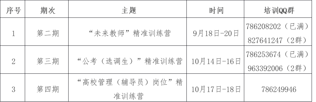 培训面向有意愿从事教师行业,获得国家教师编制或私立中学教师岗位的在校生(含本科生、硕士生和博士生),旨在帮助毕业生掌握教师求职技巧,包括备考内容培训和面试技能等,帮助毕业生切实提升求职竞争力。