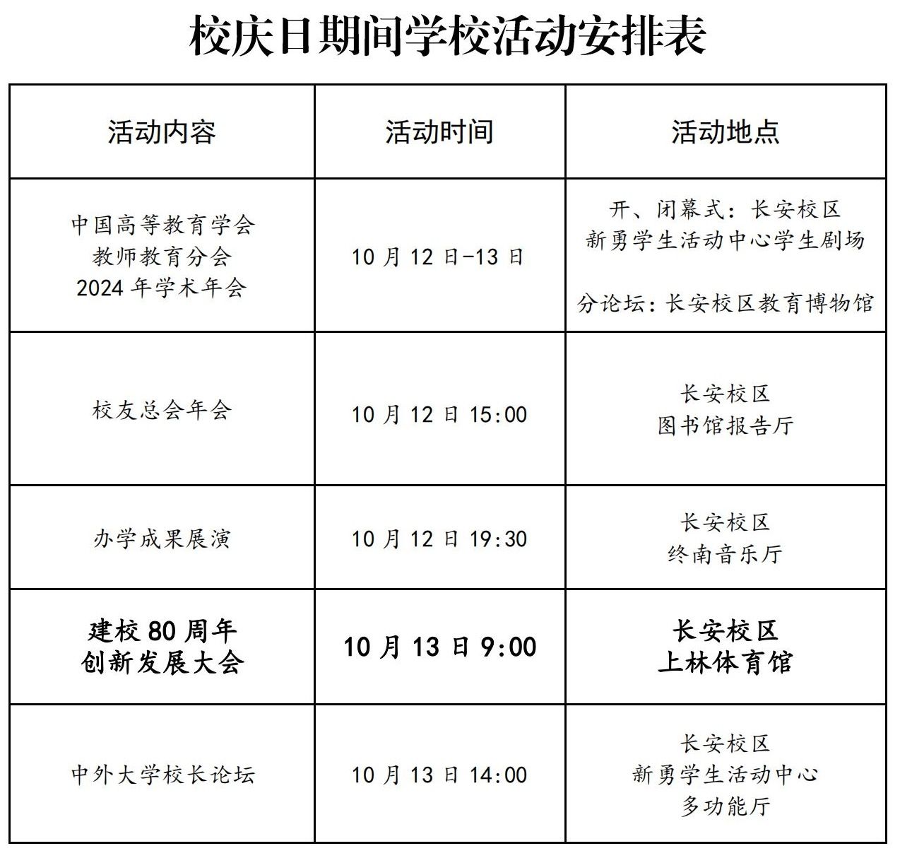 金秋十月,天高气爽。与国同庆,共襄盛会。惟二〇二四年十月十三日上午,beat365体育官方网站建校80周年创新发展大会定于长安校区举行,特此公告。