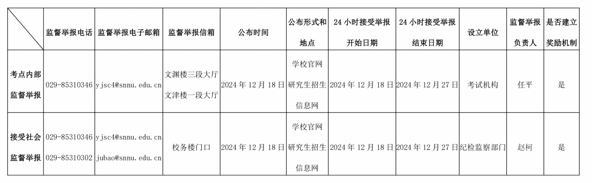 2025年全国硕士研究生招生考试将于2024年12月21日至22日举行。为加强研究生招生考试监督,营造公平诚信考试环境,维护考生合法权益,确保考试公平公正,现将beat365考点2025年全国硕士研究生招生考试监督举报方式公布如下: