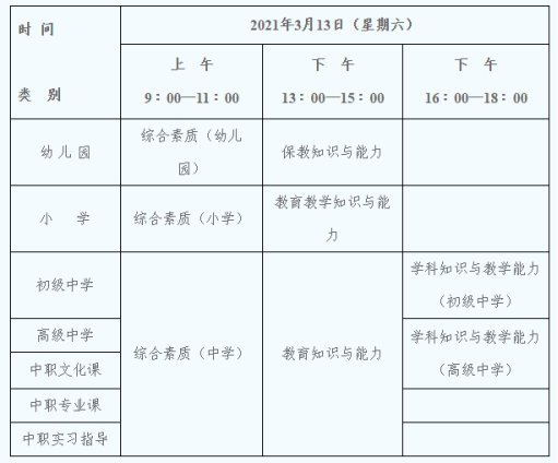 (二)根据《教育部教师工作司关于中小学教师资格考试增加“心理健康教育”等学科的通知》(教师司函〔2017〕41号)和《教育部教师工作司关于中小学教师资格考试增加“特殊教育”等学科的通知》(教师司函〔2019〕51号),中小学教师资格考试初中、高中、中职文化课类别面试增设“心理健康教育”、“日语”、“俄语”、“特殊教育”等学科,新增学科的笔试科目三《学科知识与教学能力》结合面试一并考核。