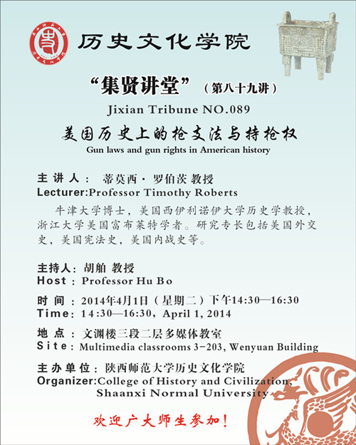 讲座题目:集贤讲堂:美国历史上的枪支法与持枪权