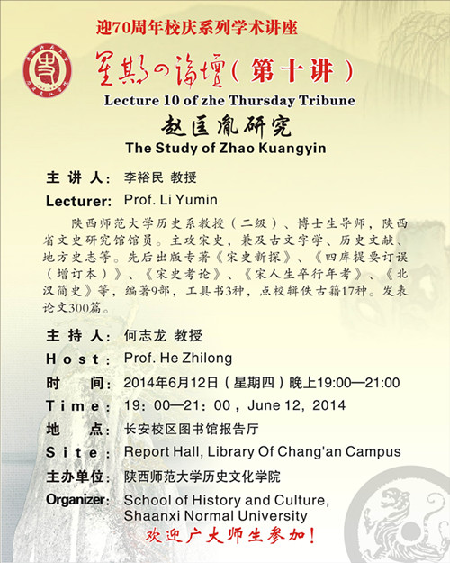 讲座题目:七十周年校庆系列学术讲座之星期四论坛第十讲:赵匡胤研究