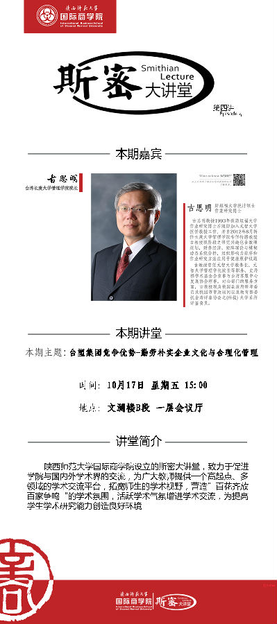 讲座题目:斯密大讲堂:台塑集团竞争优势——勤劳朴实企业文化与合理化管理