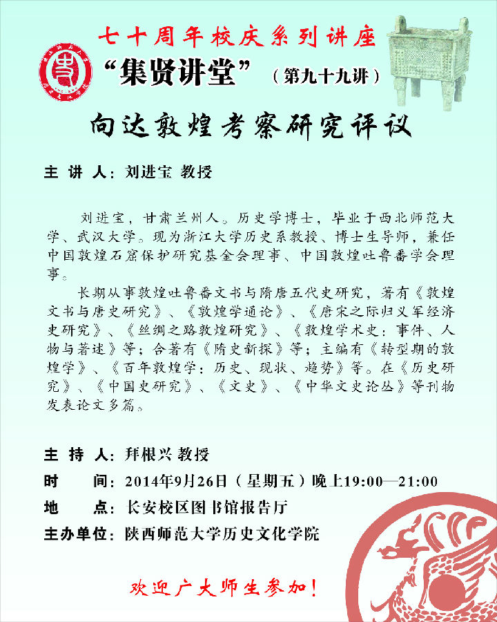 讲座人:刘进宝 教授