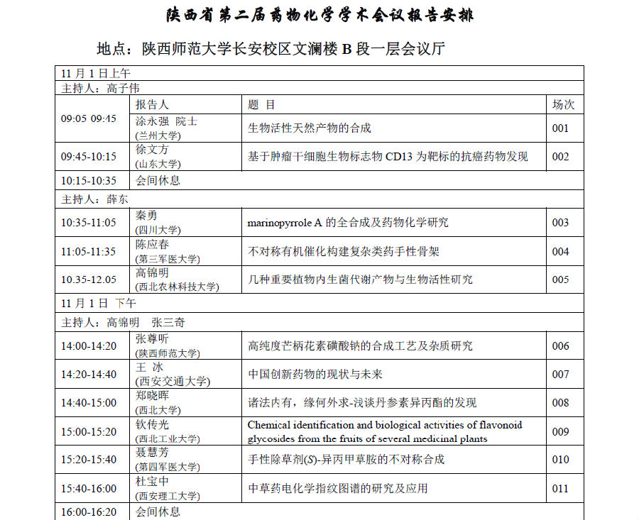 活动类别:“七十周年校庆”系列活动——陕西省第二届药物化学学术会议