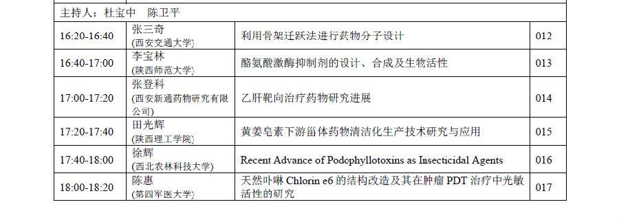 主办单位:陕西省药学会药物化学专业委员会、beat365体育官方网站化学化工学院、药用资源与天然药物化学教育部重点实验室