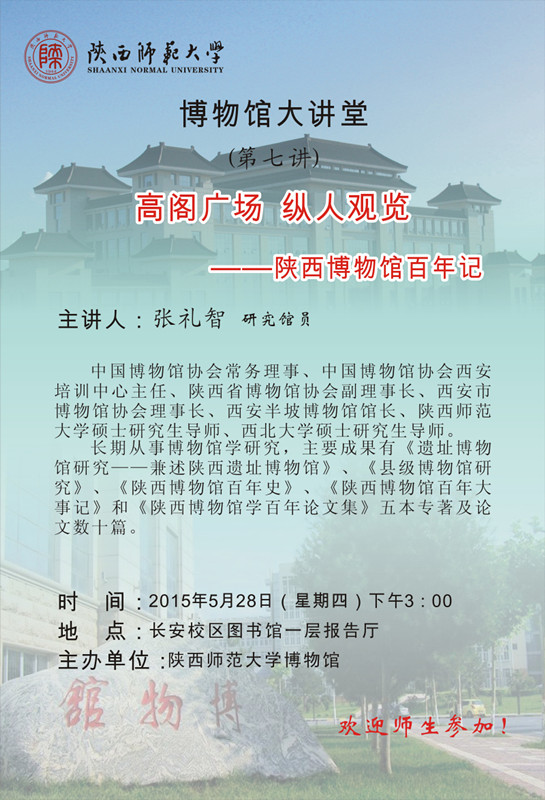 讲座题目:高阁广场 纵人观览 ——陕西博物馆百年记
