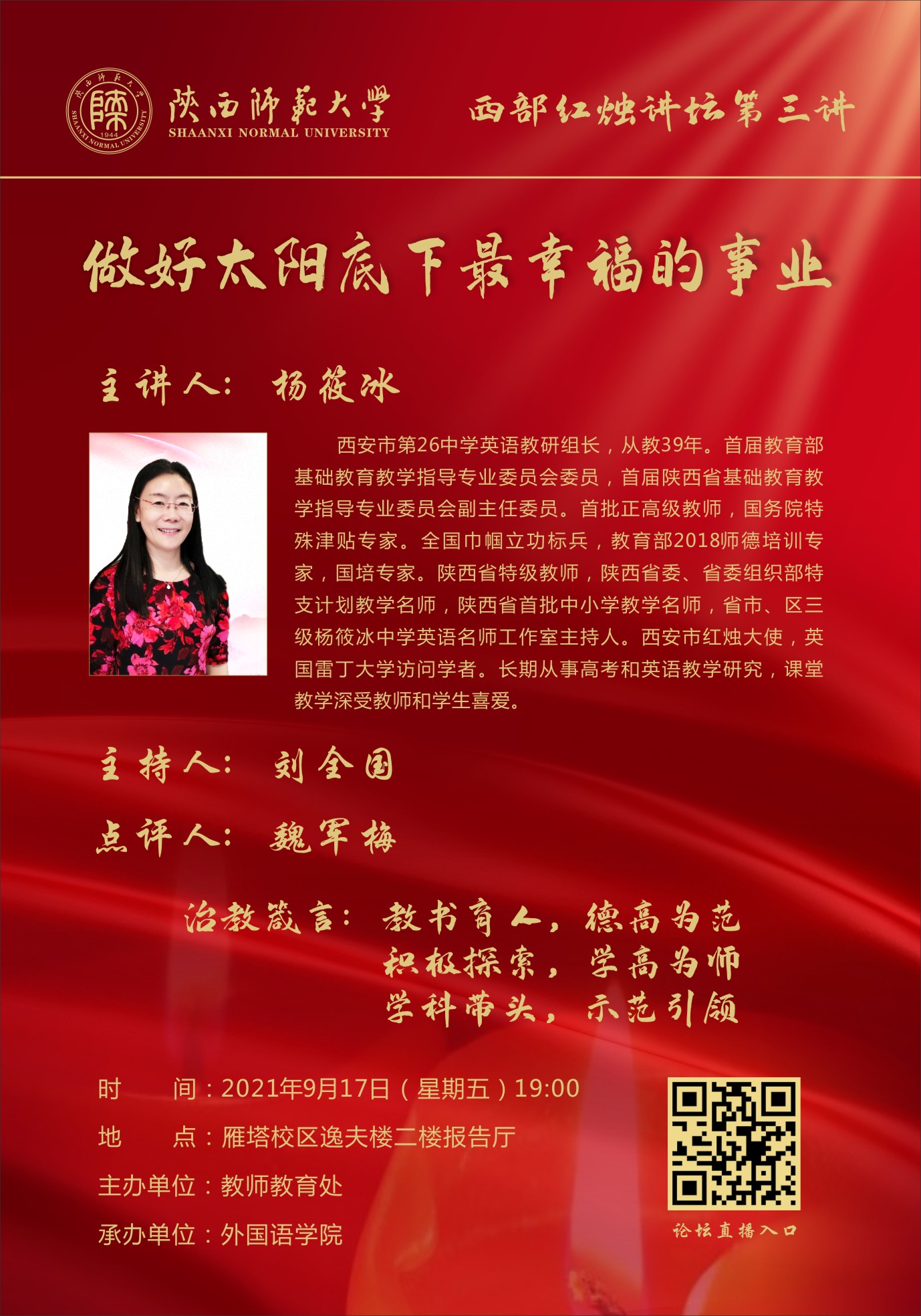 西部红烛讲坛第三讲:做好太阳底下最幸福的事业