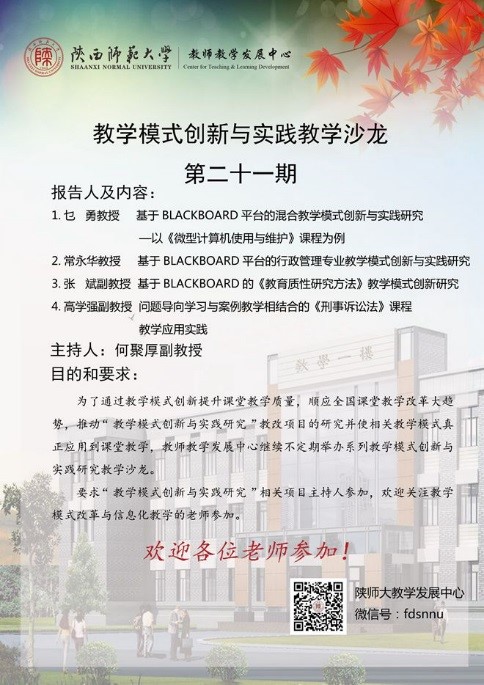 教学模式创新与实践教学沙龙第21期:基于BB平台的混合式教学模式应用与实践