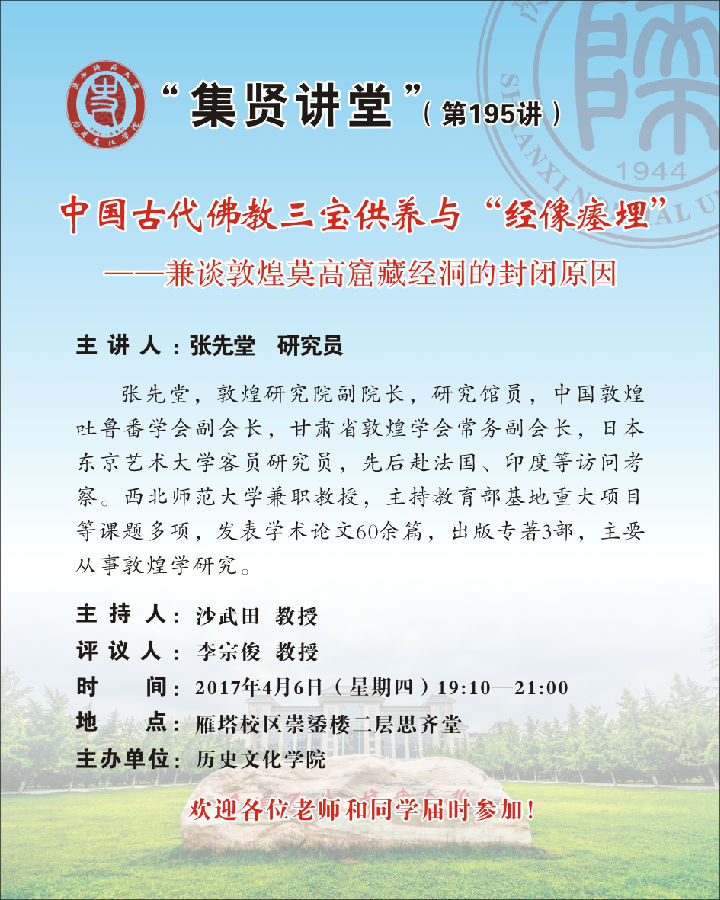 讲座题目:集贤讲堂第195讲:中国古代佛教三宝供养与“经像瘗埋” ——兼谈敦煌莫高窟藏经洞的封闭原因