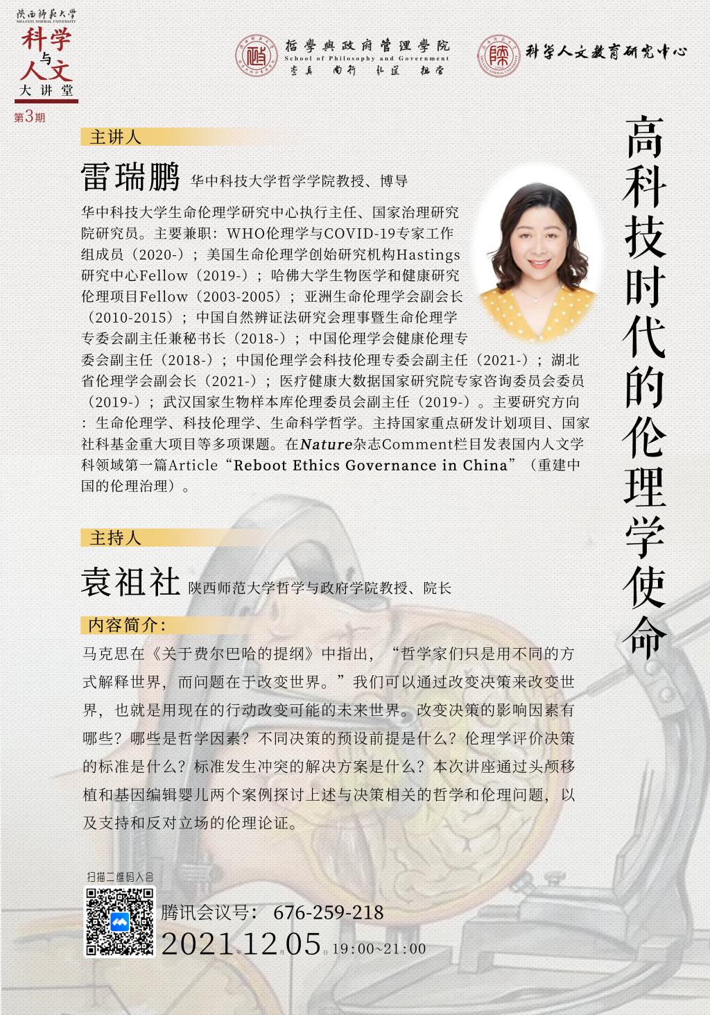 科学与人文大讲堂(第3期):高科技时代的伦理学使命