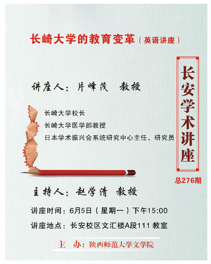 讲座题目:长安学术讲座第276期:长崎大学的教育变革(英语讲座)