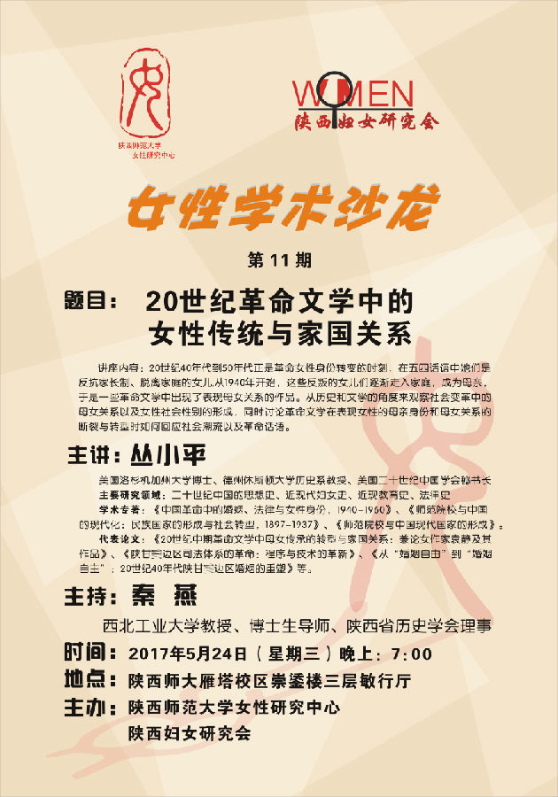 讲座题目:20世纪革命文学中的女性传统与家国关系