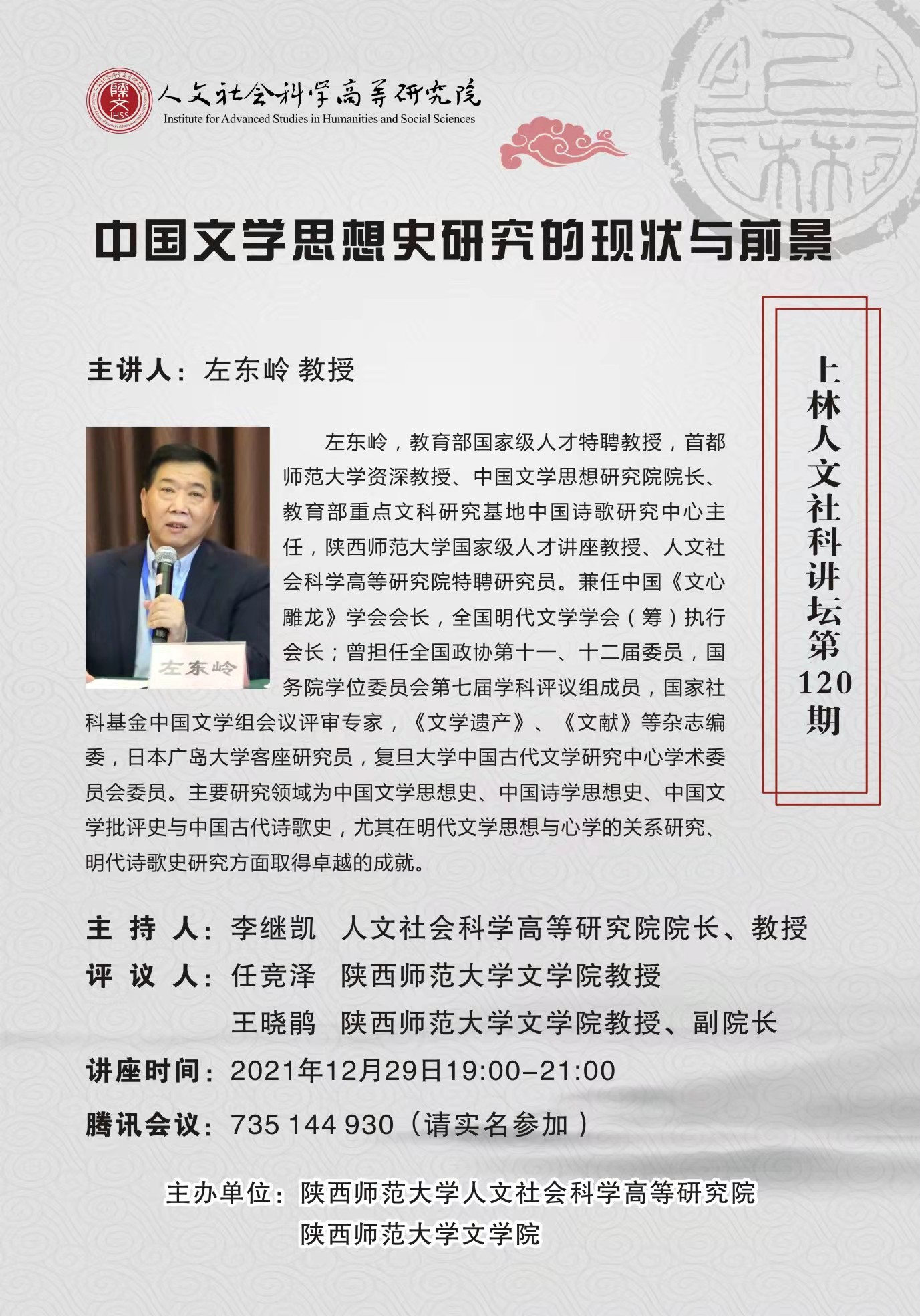 上林人文社科讲坛(第120期):中国文学思想史研究的现状与前景