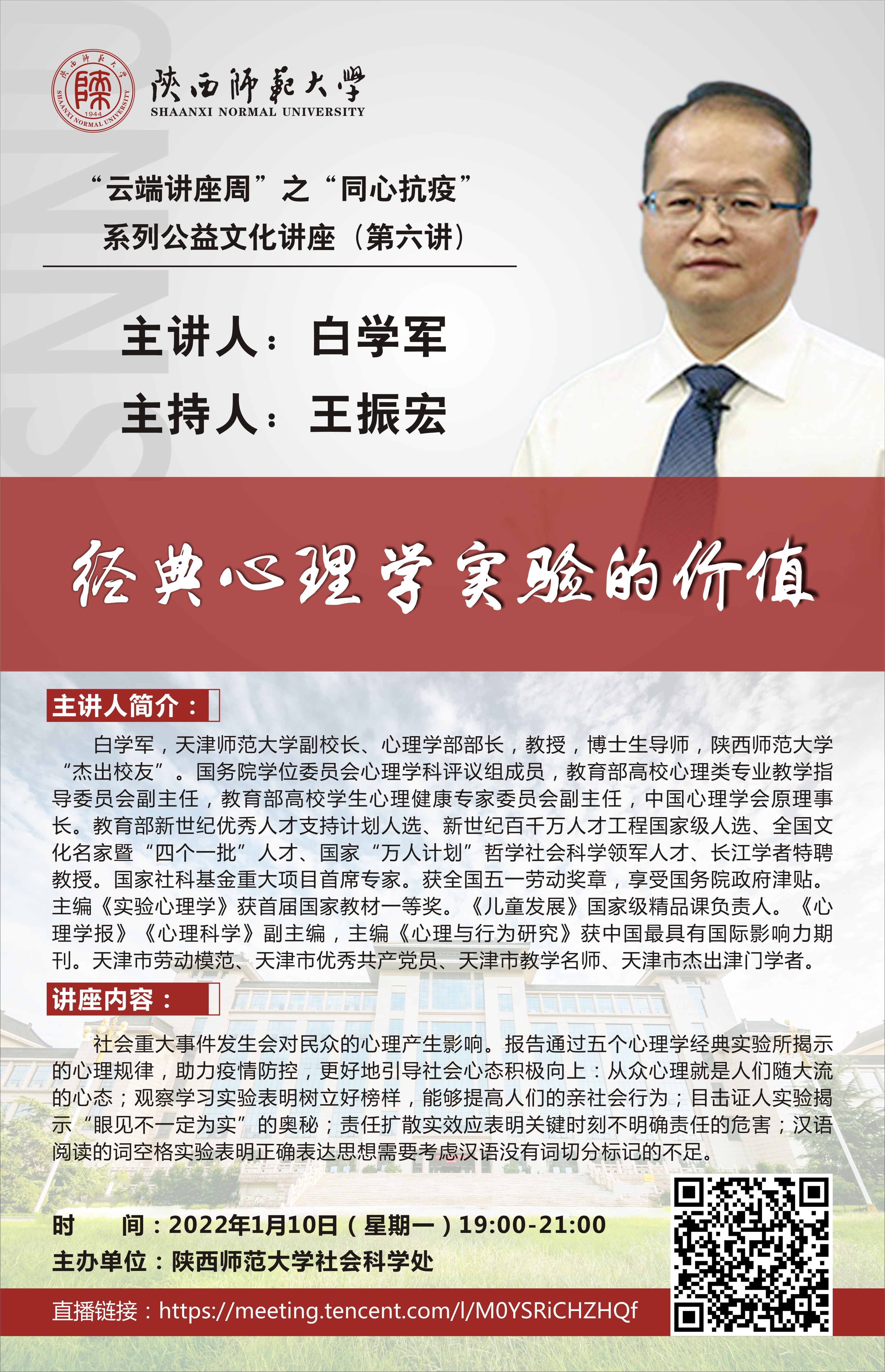 “云端讲座周”之“同心抗疫”系列公益文化讲座(第六讲):经典心理学实验的价值