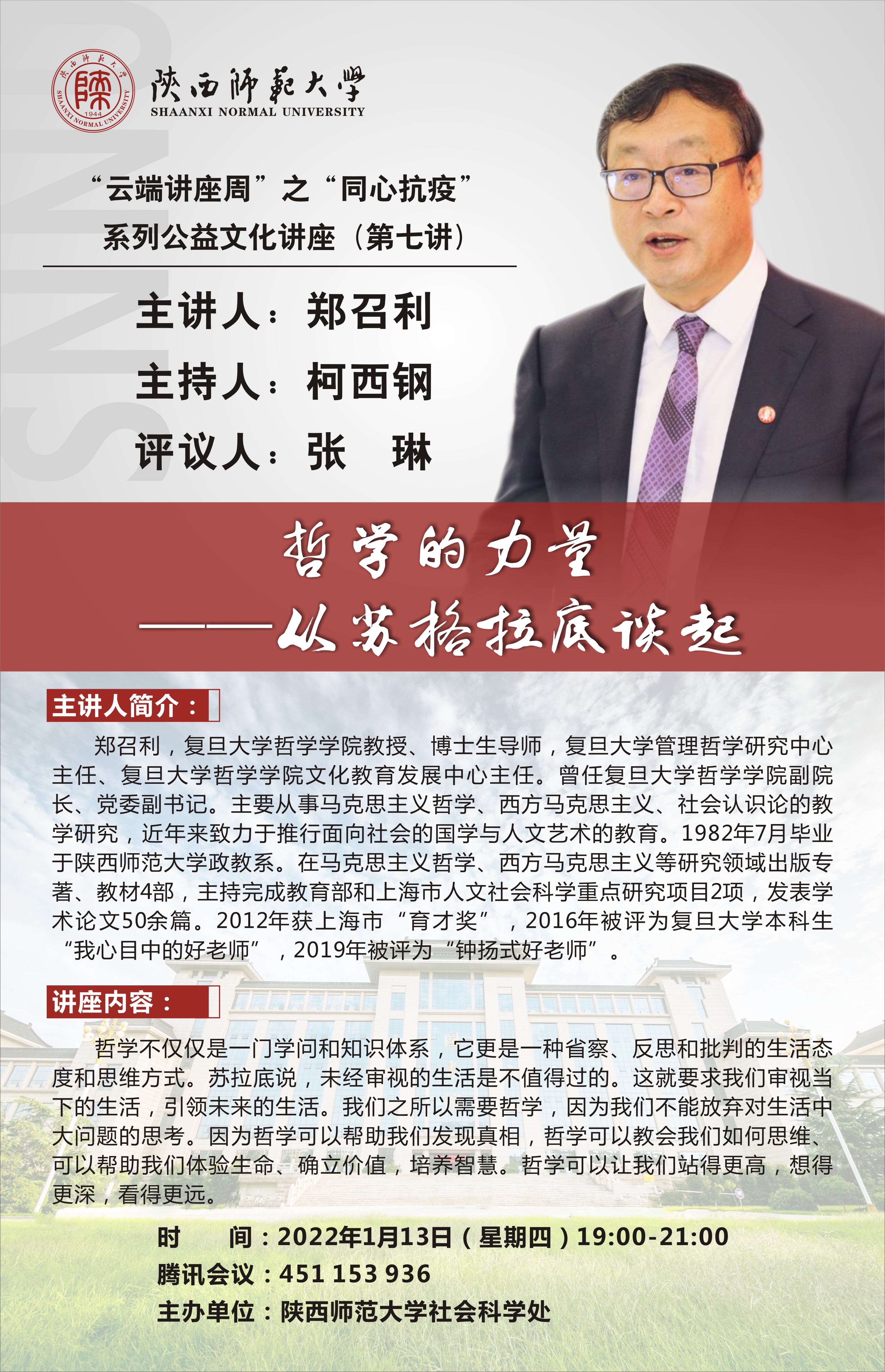 “云端讲座周”之“同心抗疫”系列公益文化讲座(第七讲):哲学的力量——从苏格拉底谈起