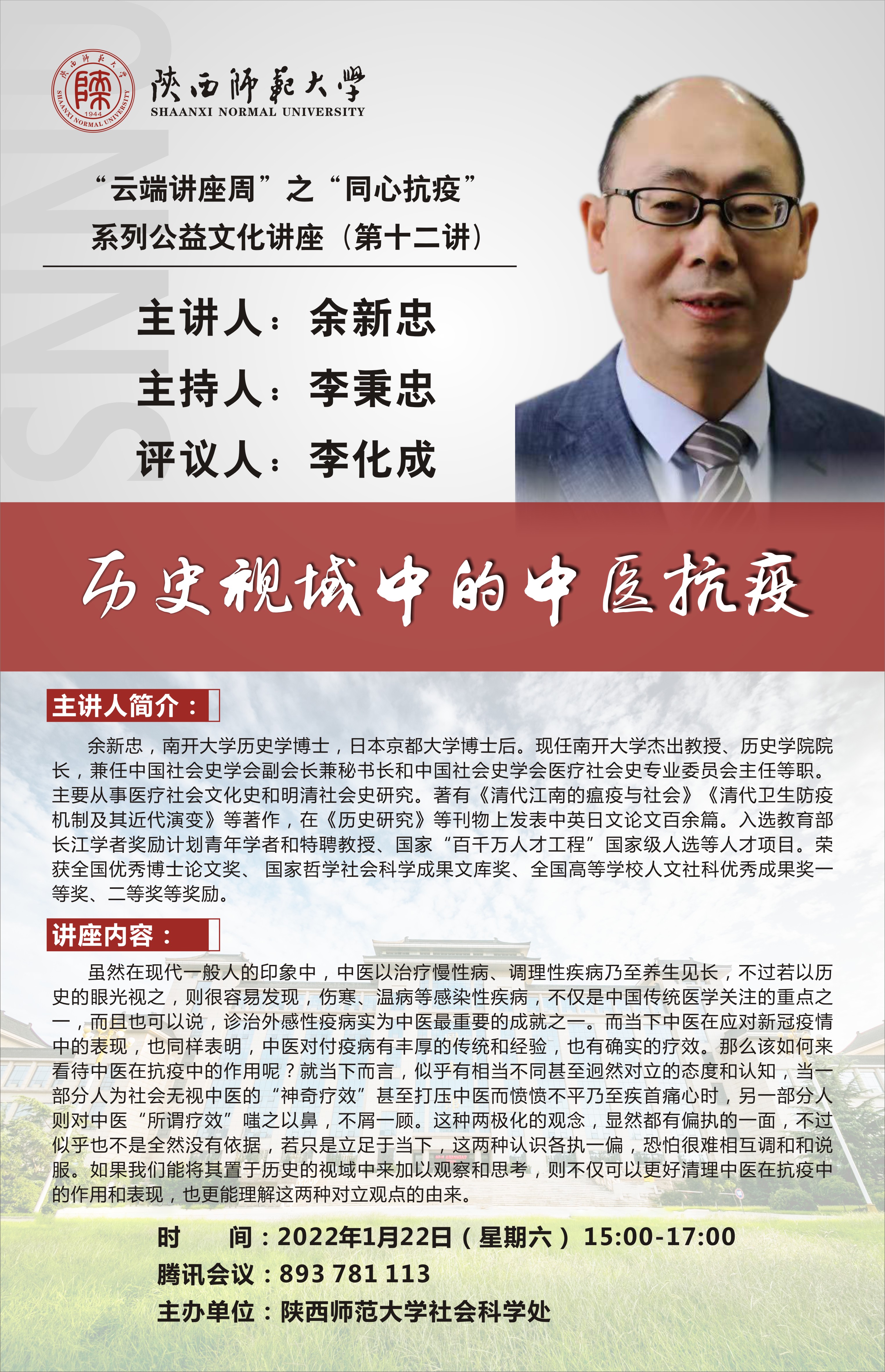 “云端讲座周”之“同心抗疫”系列公益文化讲座(第十二讲):历史视域中的中医抗疫