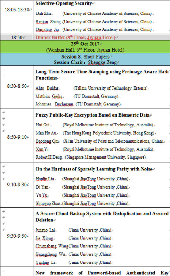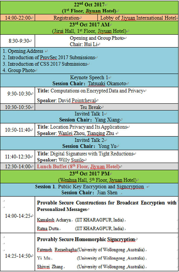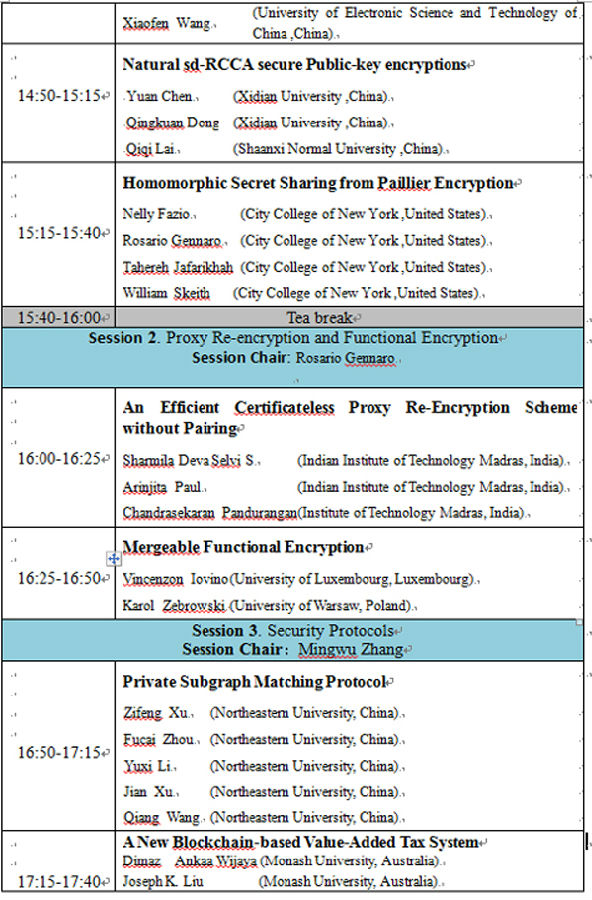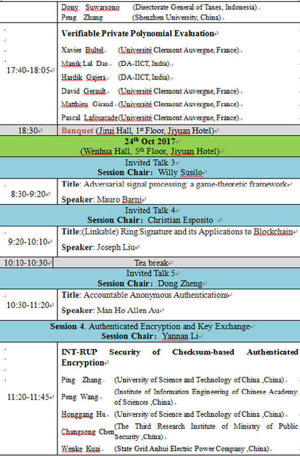 讲座题目:第11届可证明安全国际会议(ProvSec 2017)