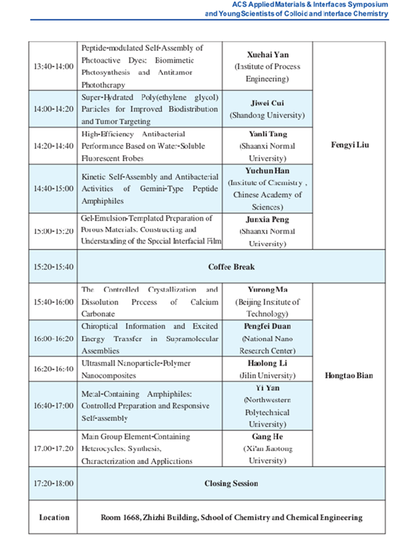 活动类别:ACS Applied Materials & Interfaces Symposium and Young Scientists of Colloid and Interface Chemistry