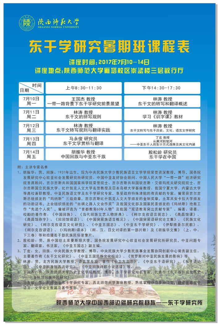 讲座题目:东干学研究暑期系列讲座