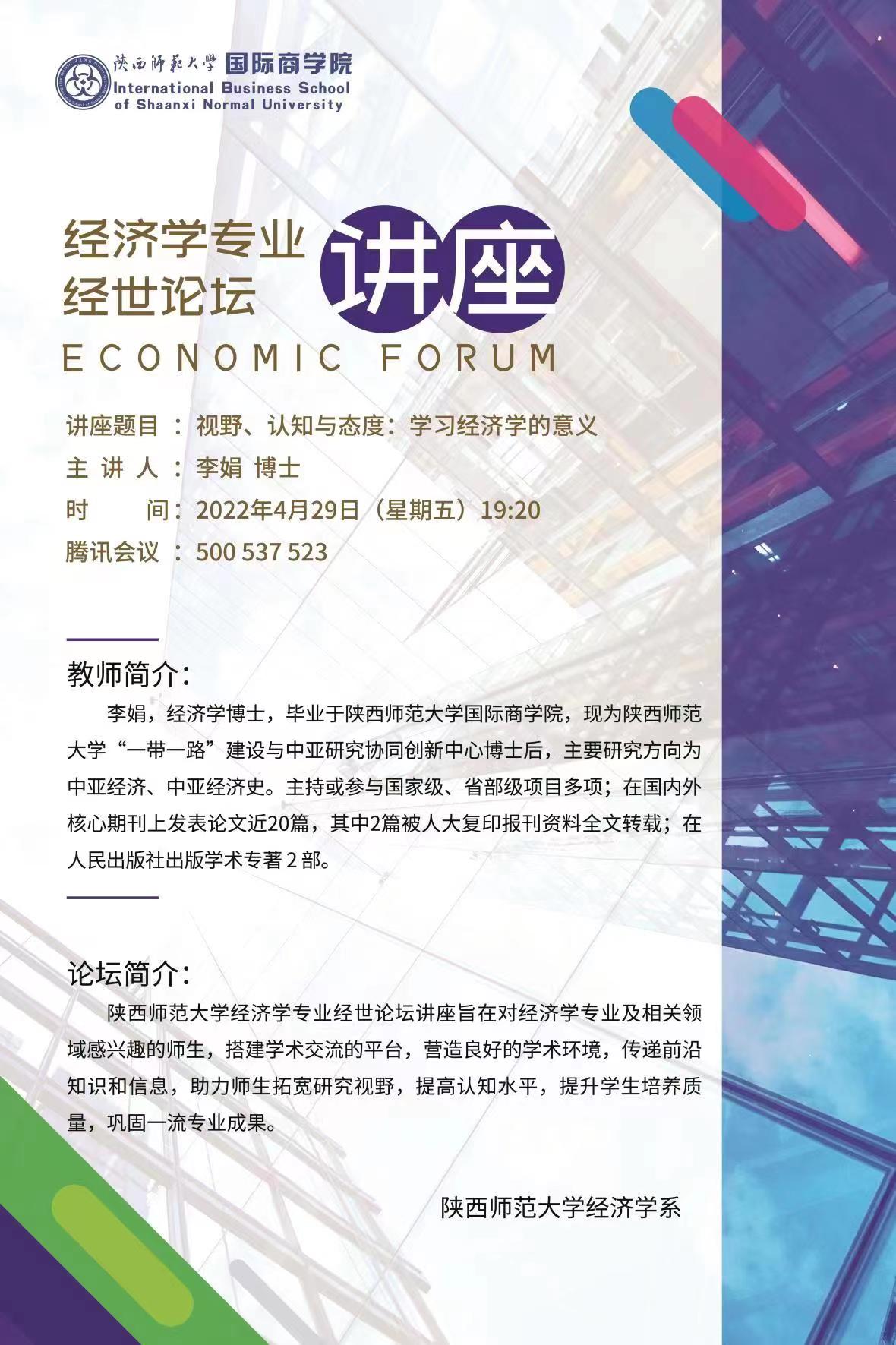 经济学专业《经世论坛》讲座——视野、认识与态度:学习经济学的意义