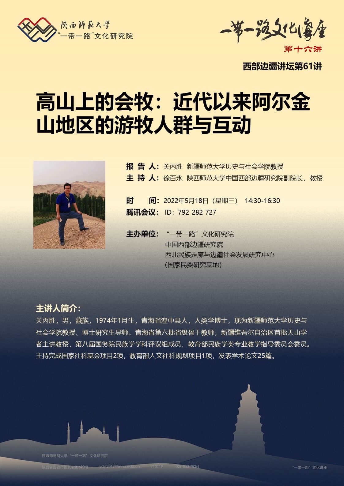 “一带一路”文化讲座(第十六讲)&西部边疆讲坛第61讲 高山上的会牧:近代以来阿尔金山地区的游牧人群与互动