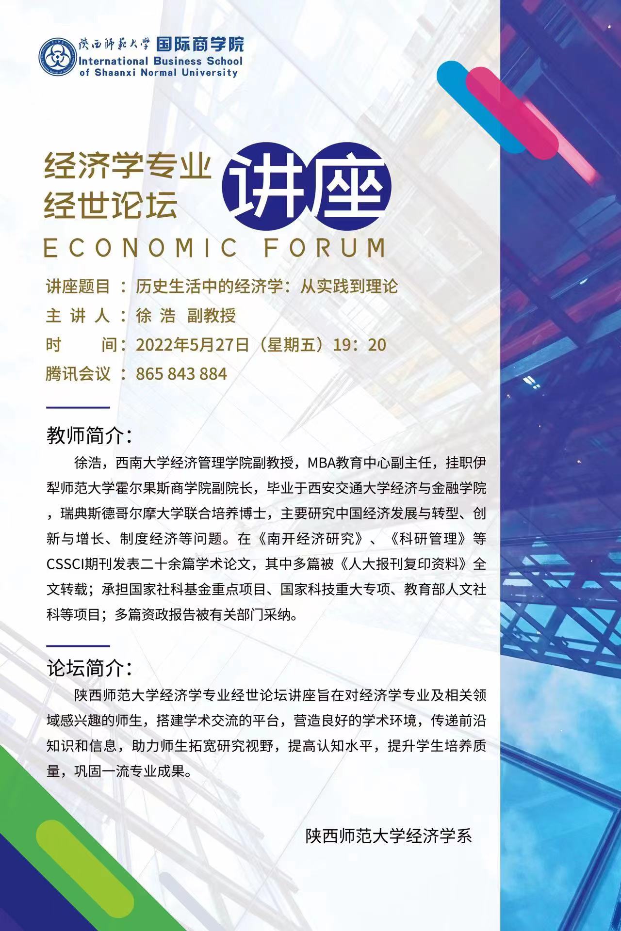 经济学专业《经世论坛》讲座——历史生活中的经济学:从实践到理论