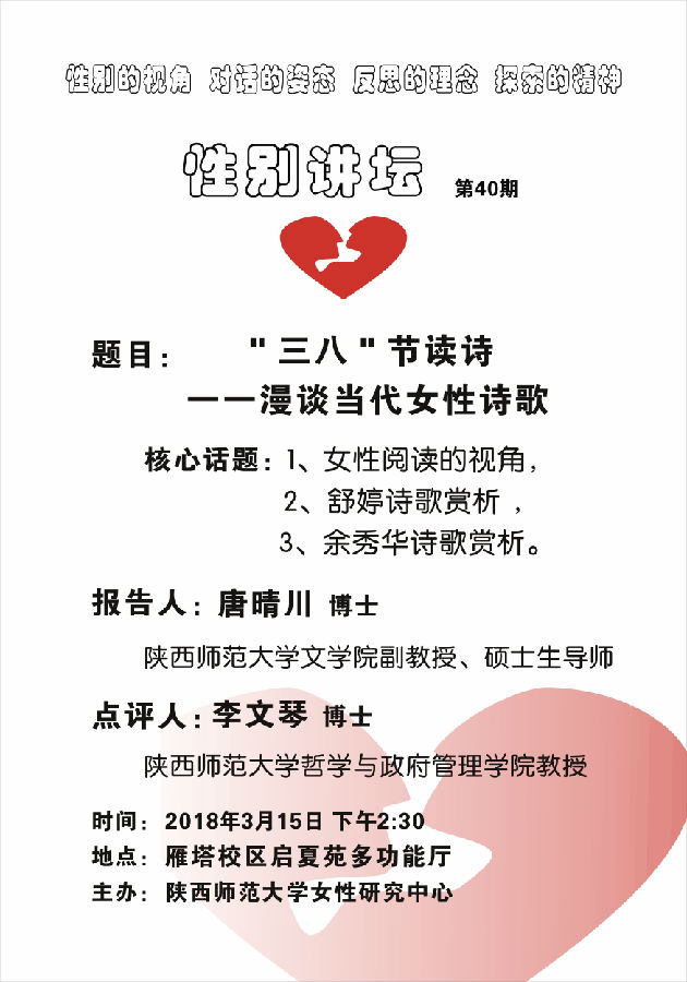 讲座题目:"三八"节读诗一一漫谈当代女性诗歌
