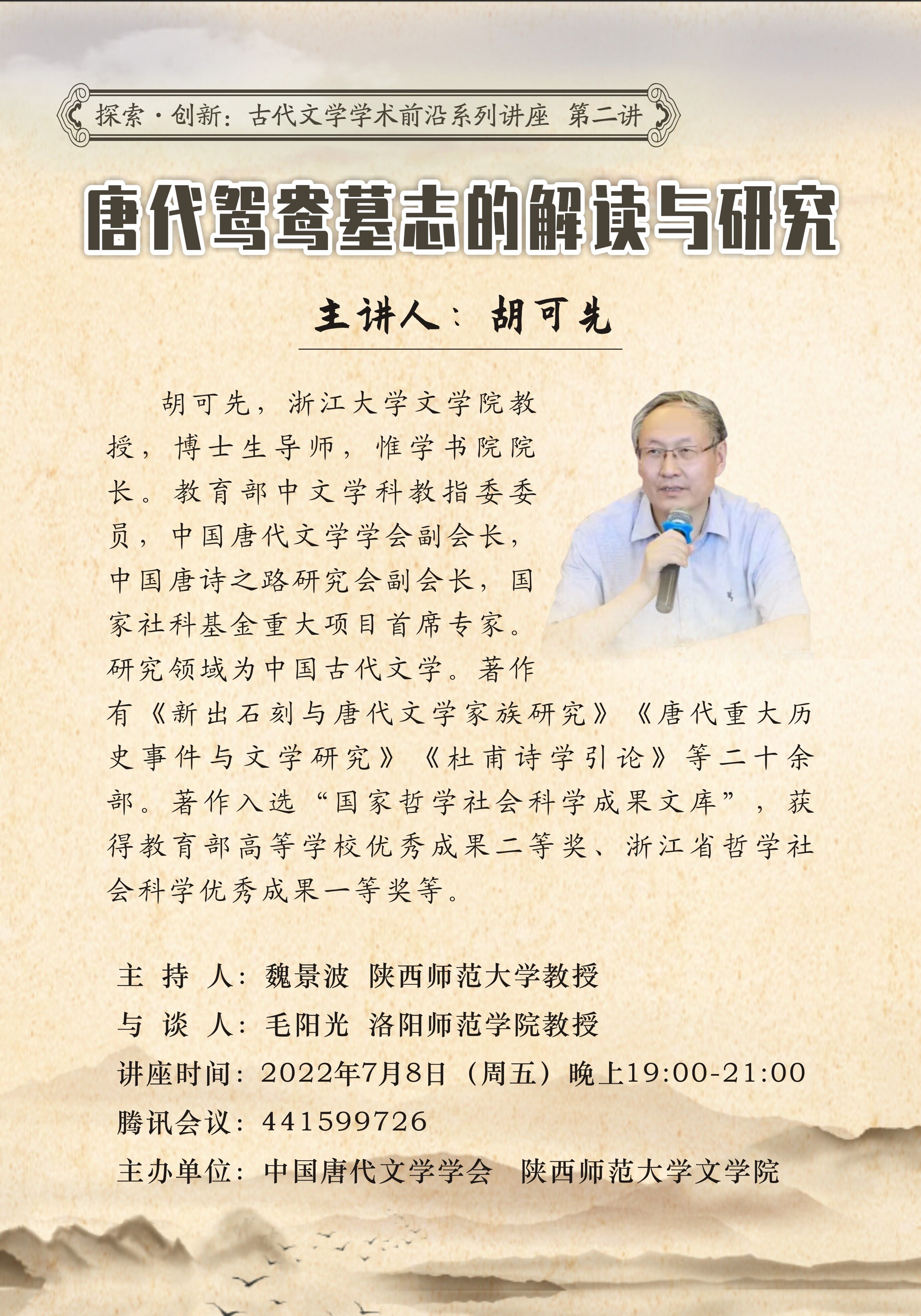 探索 创新:古代文学学术前沿系列讲座(第二讲)——唐代鸳鸯墓志的解读与研究