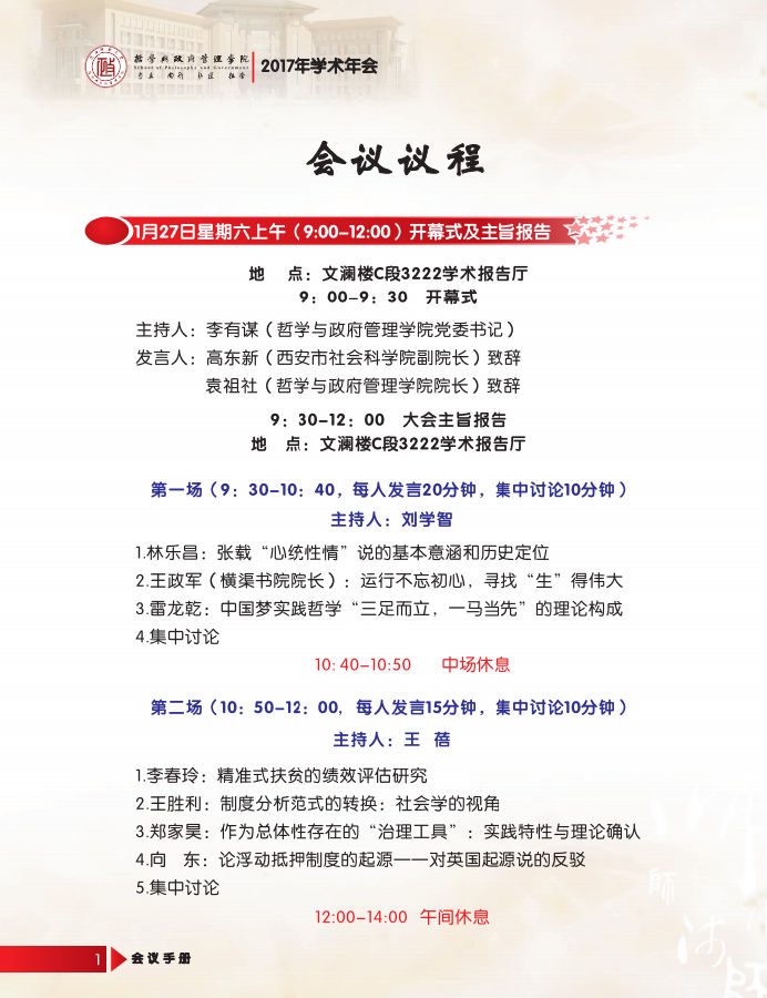 活动类别:哲学与政府管理学院2017年学术年会——“新时代”哲学与社会变革