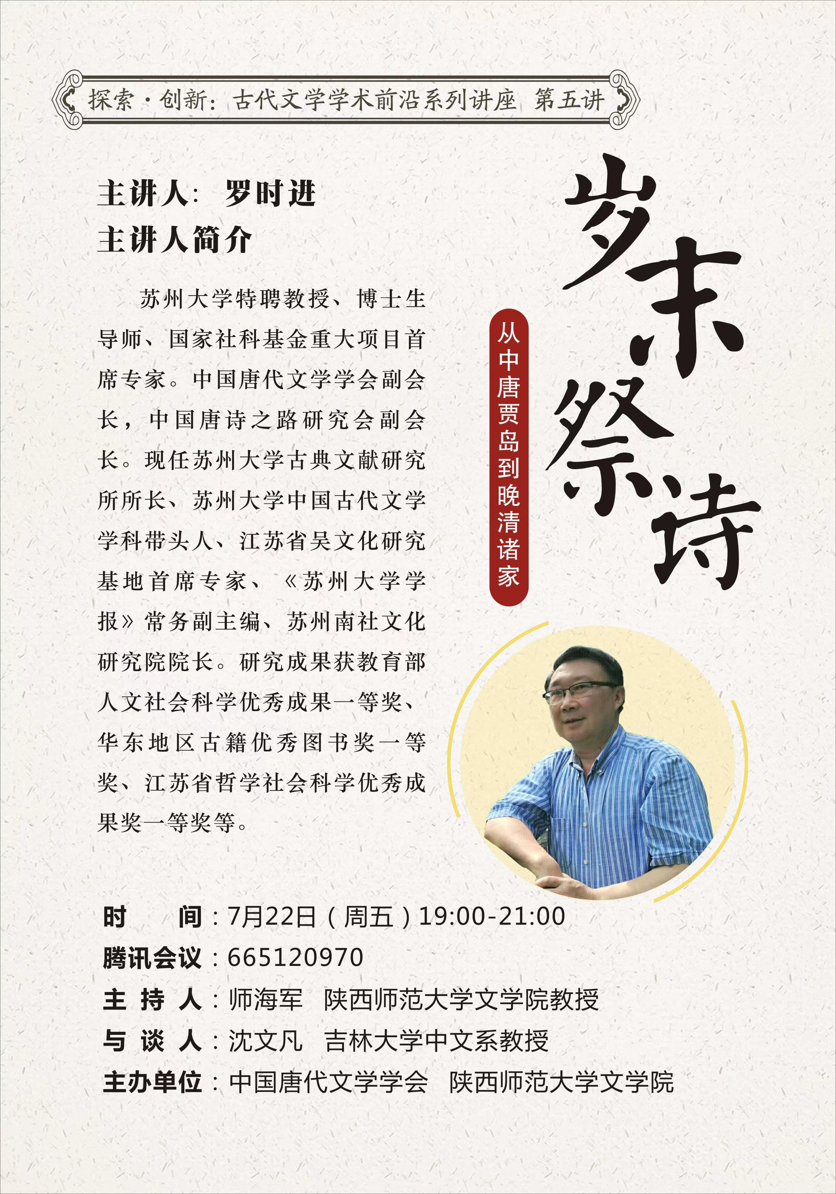 探索 创新:古代文学学术前沿系列讲座(第五讲)——岁末祭诗:从中唐贾岛到晚晴诸家