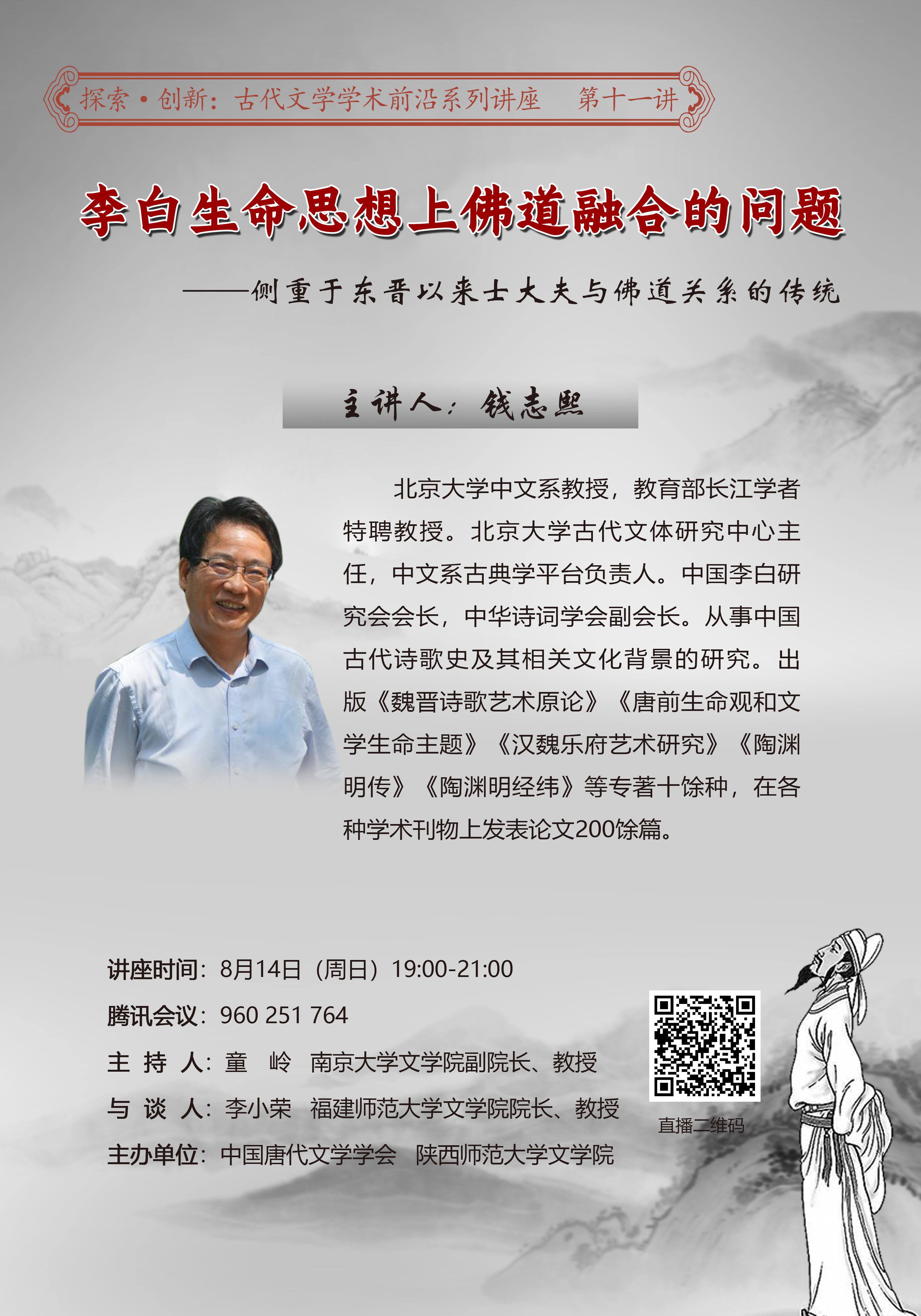探索 创新:古代文学学术前沿系列讲座(第十一讲):李白生命思想上佛道融合的问题--侧重于东晋以来士大夫与佛道关系的传统