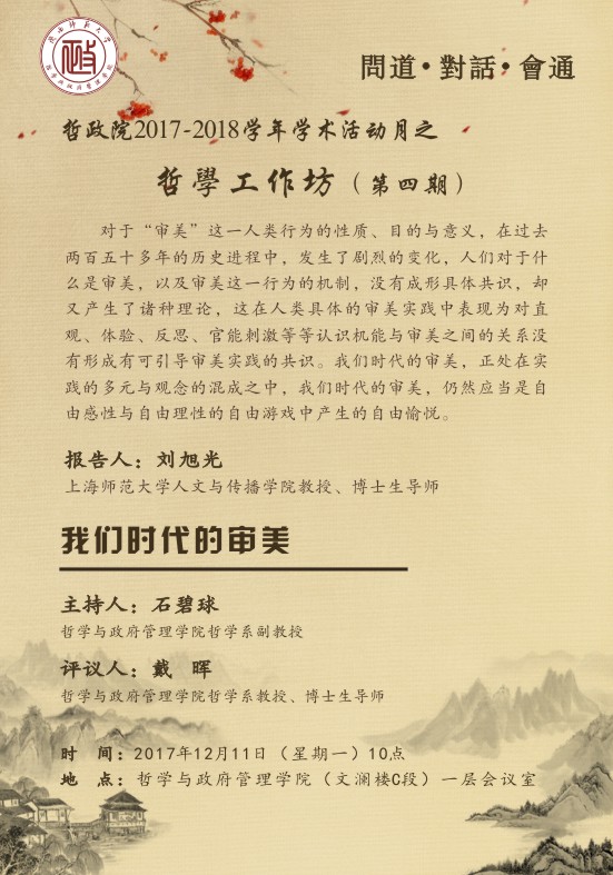 讲座题目:哲学工作坊第四期:我们时代的审美