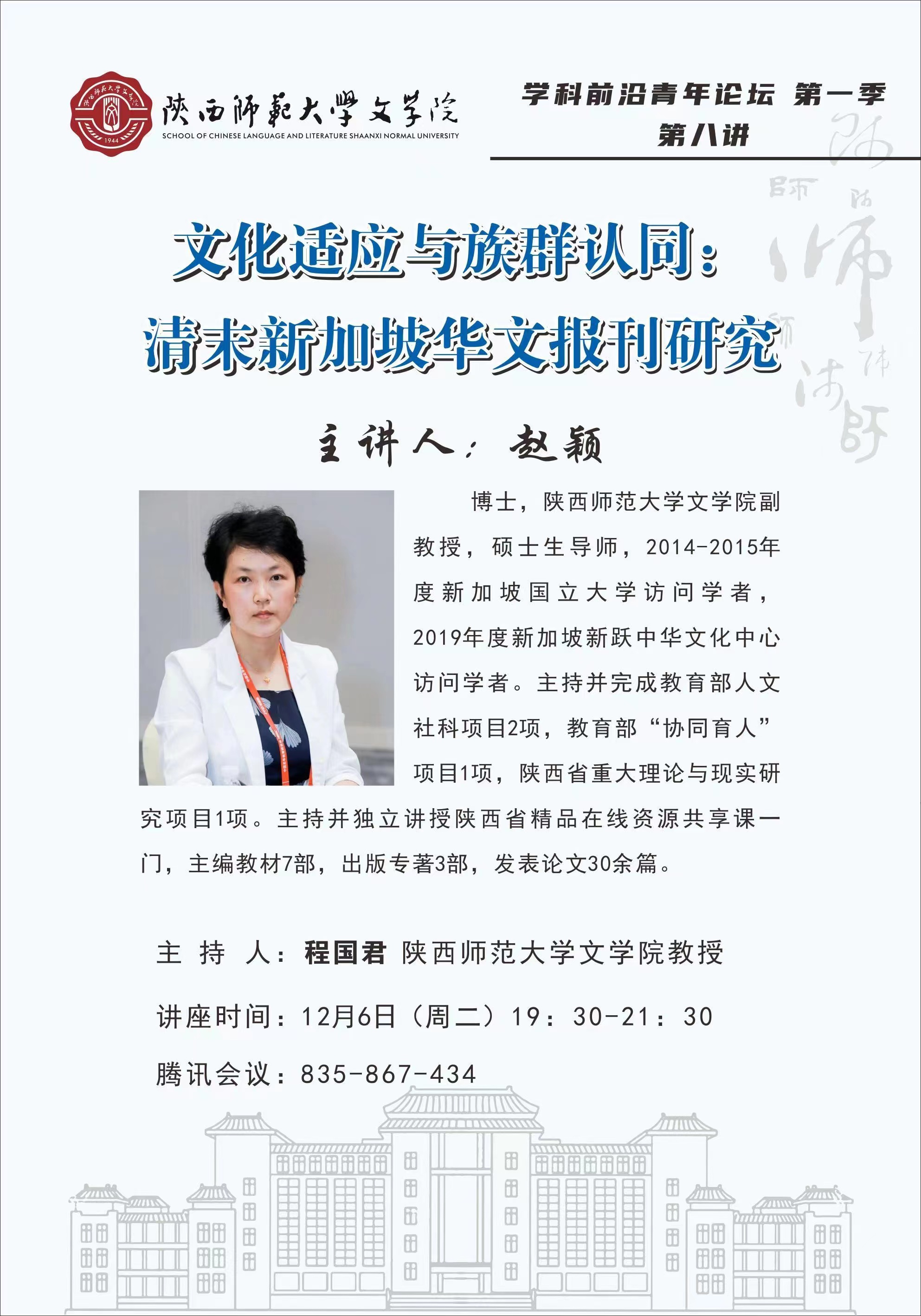 学科前沿青年论坛(第一季第八讲) 文化适应与族群认同:清末新加坡华文报刊研究
