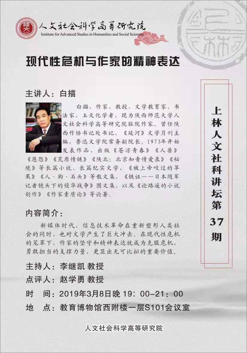 上林人文社科讲坛第37期:现代性危机与作家的精神表达