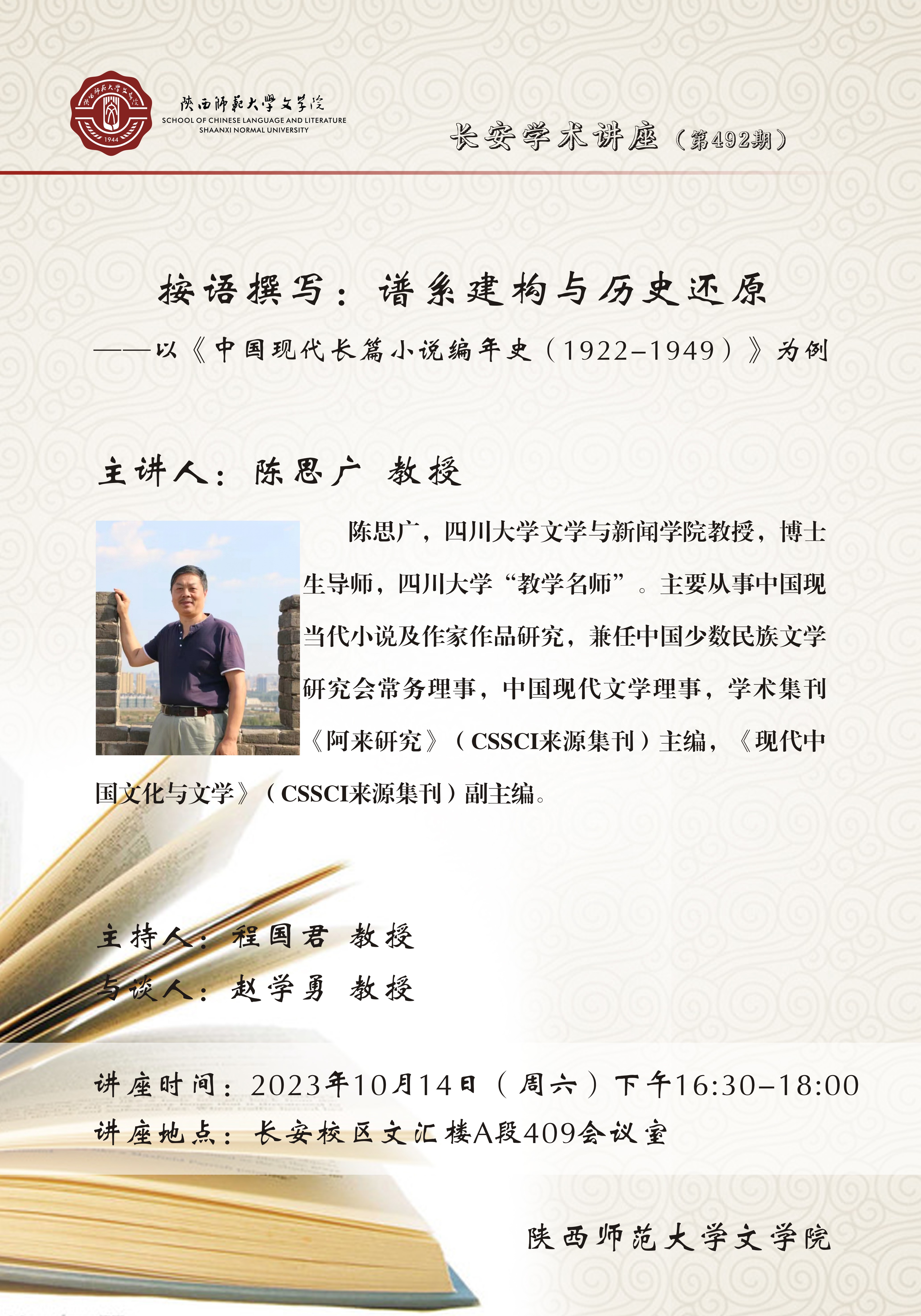 长安学术讲座(总492期) 按语撰写:谱系建构与历史还原——以《中国现代长篇小说编年史(1922-1949)》为例