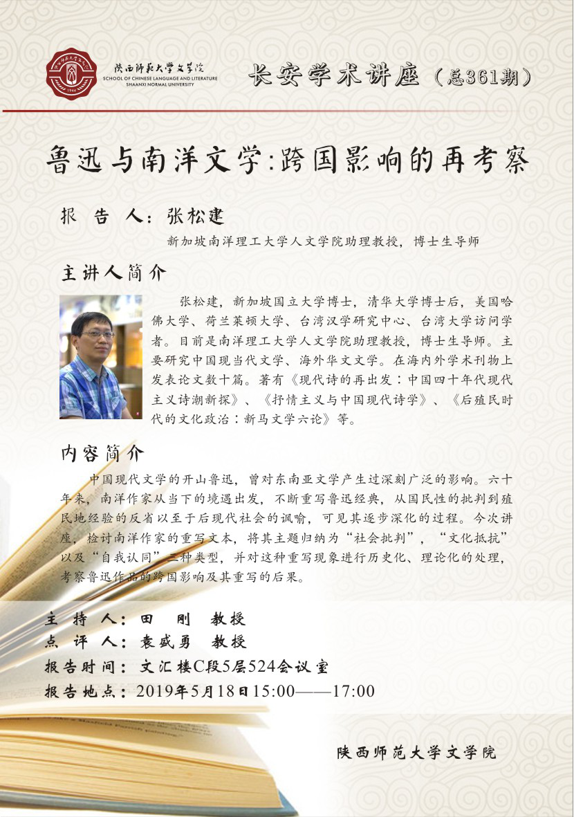 长安学术讲座第361期:鲁迅与南洋文学:跨国影响的再考察