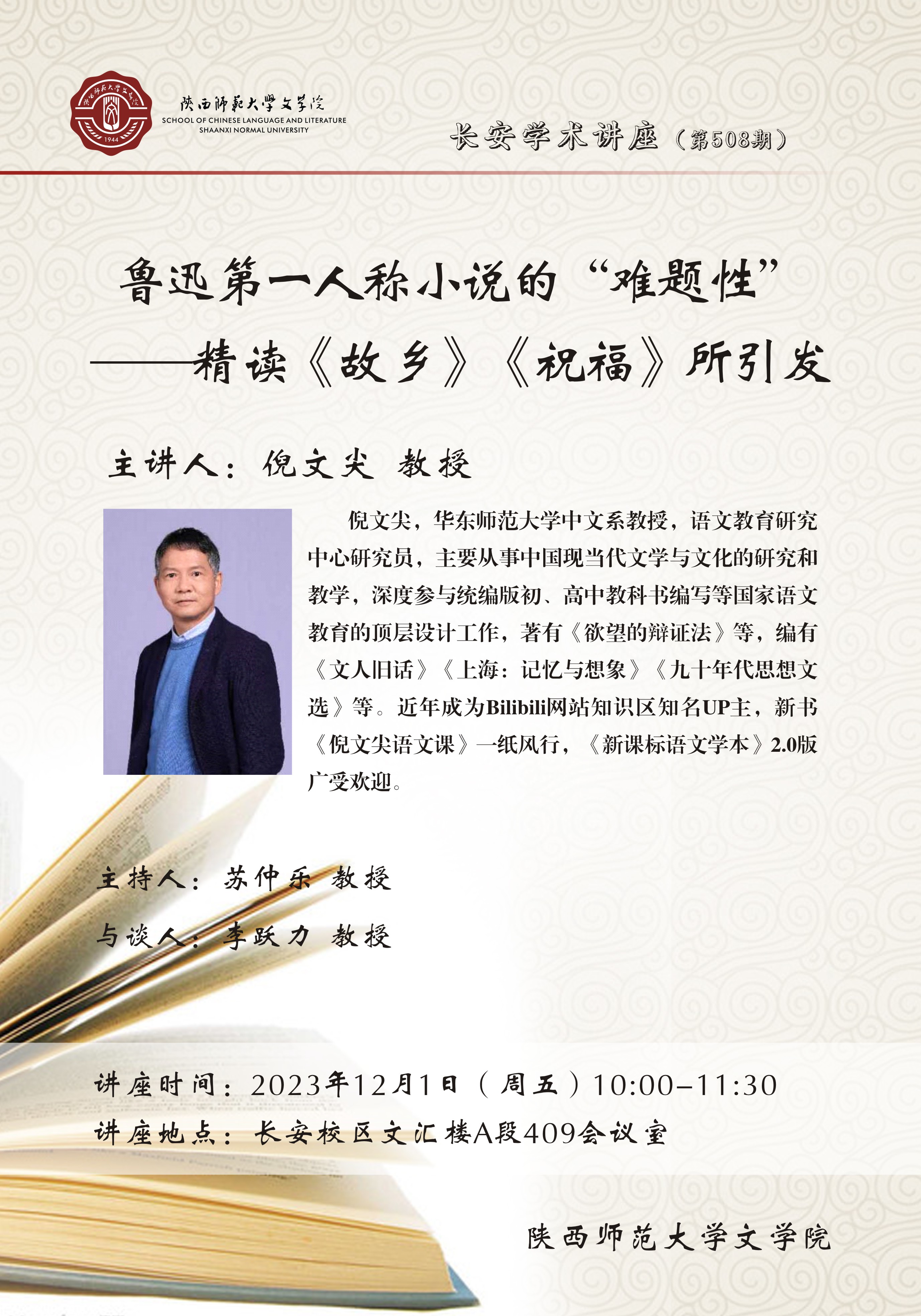 长安学术讲座(第508期) 鲁迅第一人称小说的“难题性”——精读《故乡》《祝福》所引发