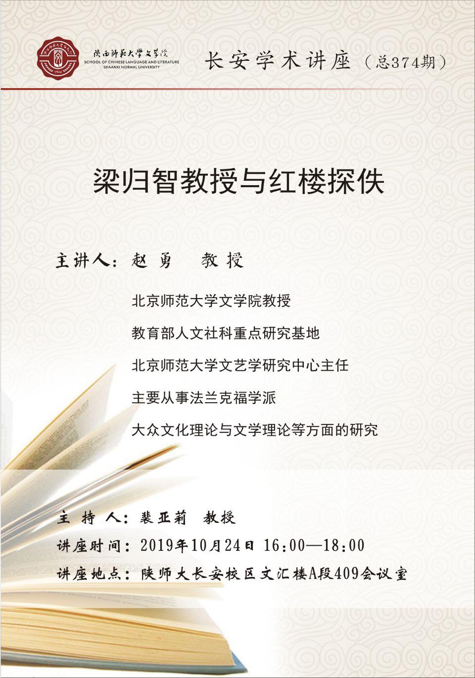 文学院长安学术讲座第374期:梁归智教授与红楼探佚