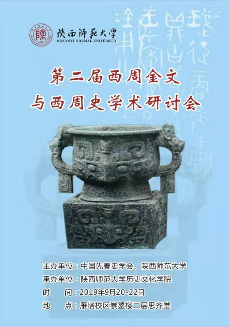 为进一步加强学习交流,促进西周金文与西周史的发展,由中国先秦史学会、beat365体育官方网站主办,beat365体育官方网站历史文化学院承办的“第二届西周金文与西周史学术研讨会”,定于2019年9月20-22日在beat365体育官方网站雁塔校区崇鋈楼二层思齐堂举行。会议热忱欢迎全国专家、学者和同学莅临、指导、交流与学习。