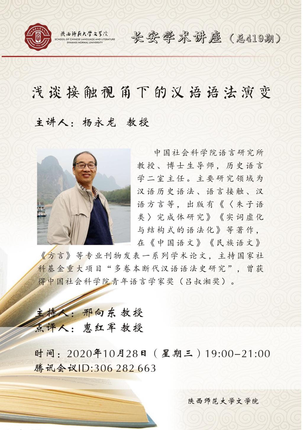 长安学术讲座(总419期):浅谈接触视角下的汉语语法演变