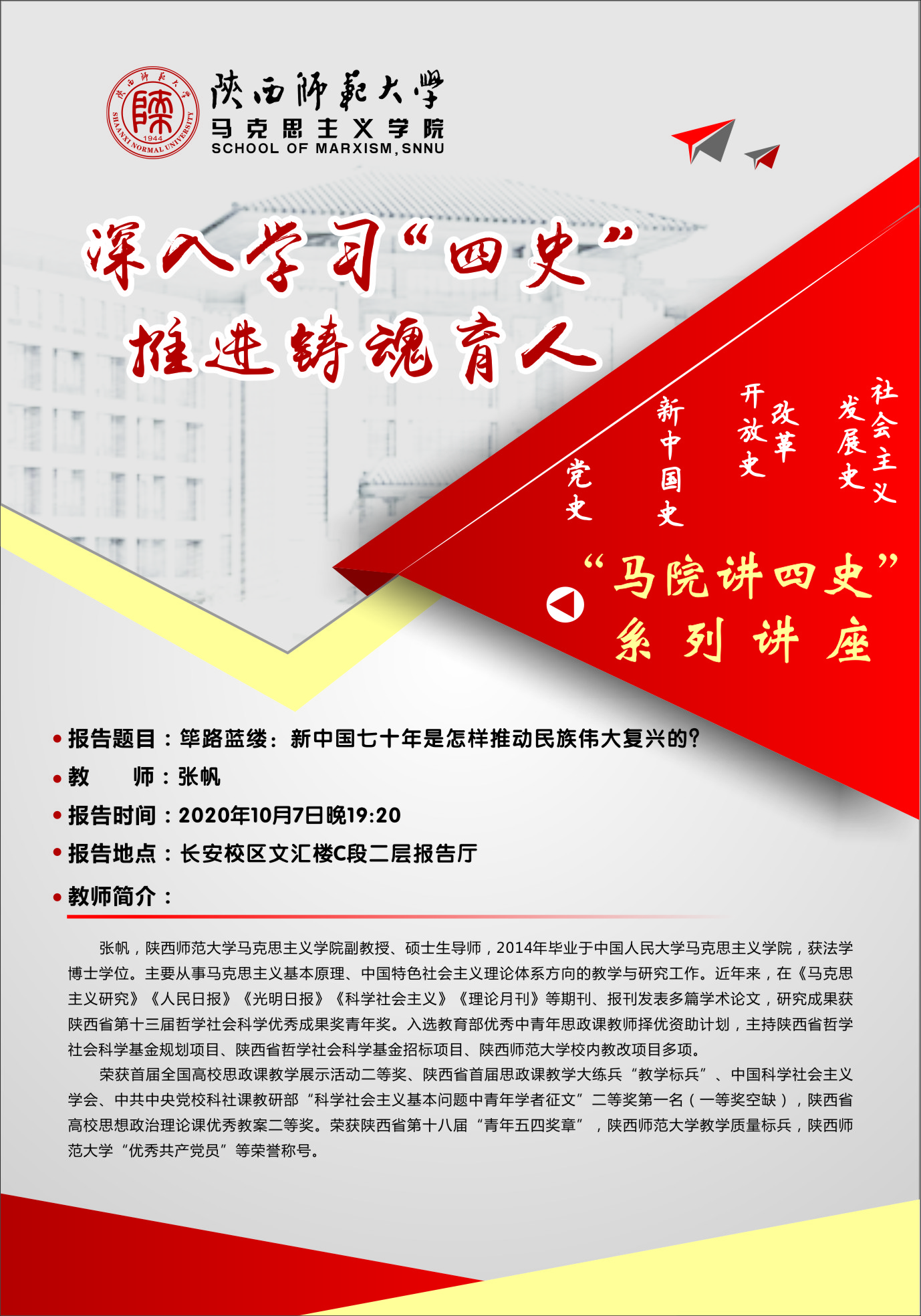 “马院讲四史”系列讲座(三):筚路蓝缕:新中国七十年是怎样推动民族伟大复兴的?