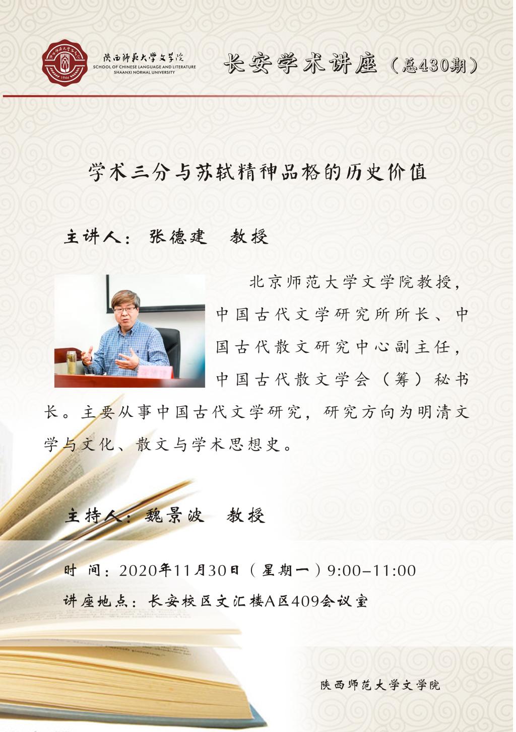 长安学术讲座(总430期):学术三分与苏轼精神品格的历史价值