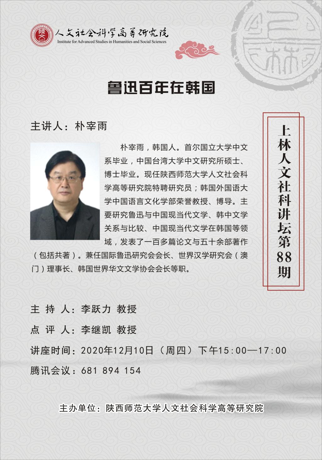 上林人文社科讲坛第88讲:鲁迅百年在韩国