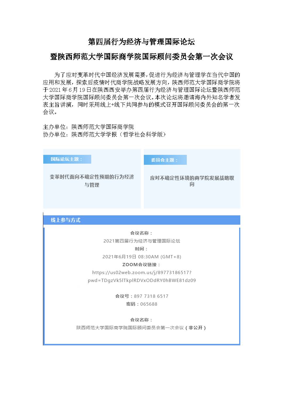 第四届行为经济与管理国际论坛暨beat365体育官方网站国际商学院国际顾问委员会第一次会议