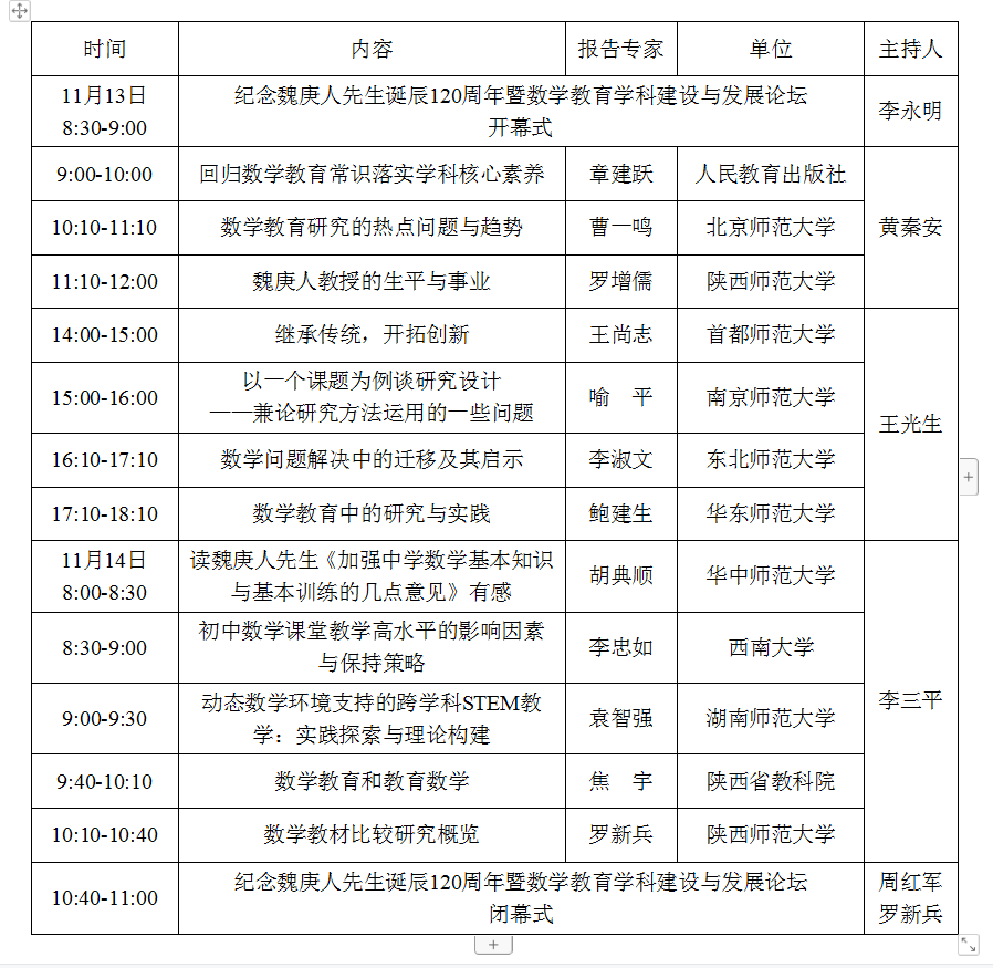 讲座题目:纪念魏庚人先生诞辰120周年暨数学教育学科建设与发展论坛