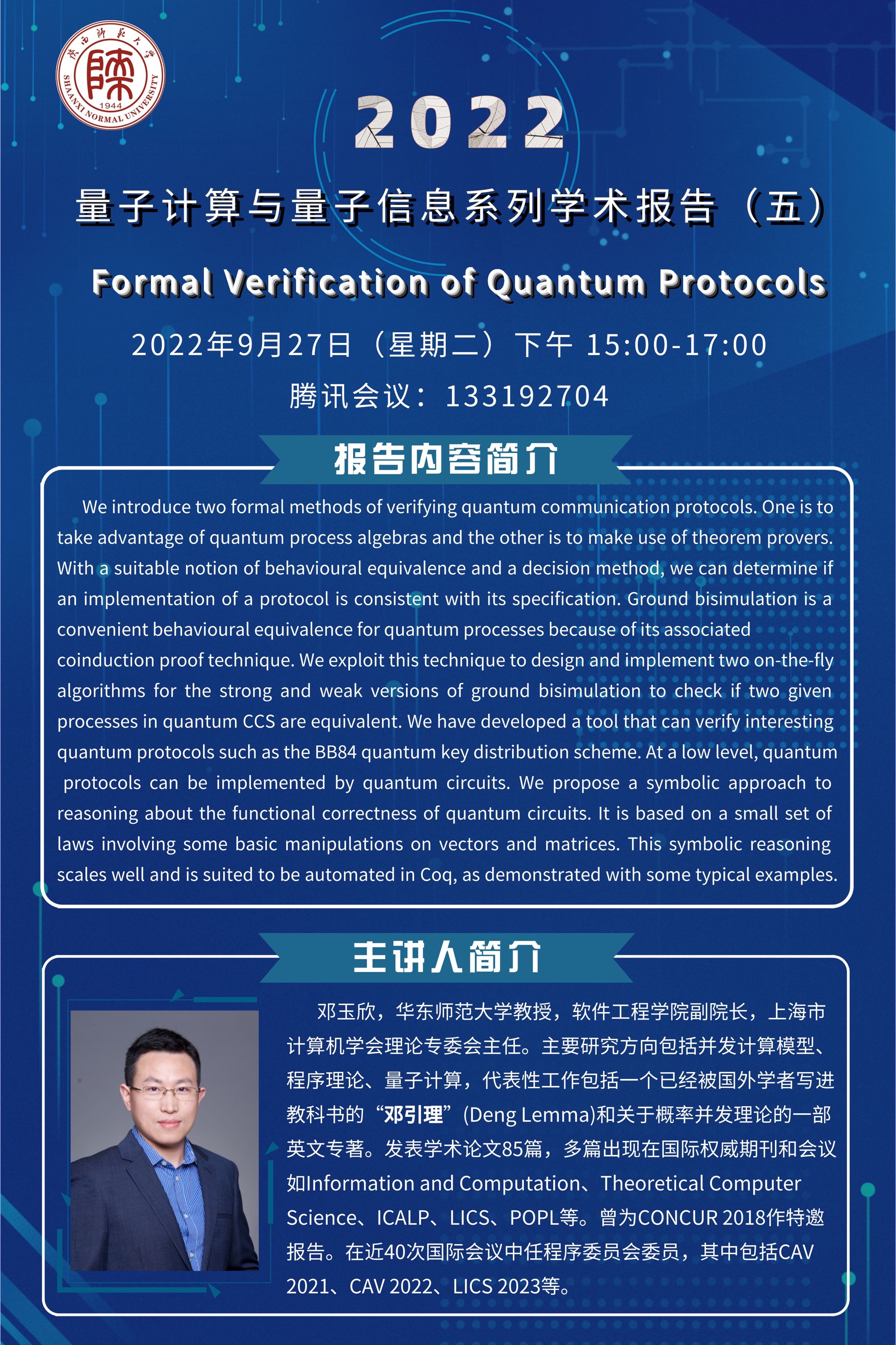 量子计算与量子信息系列学术报告(五)